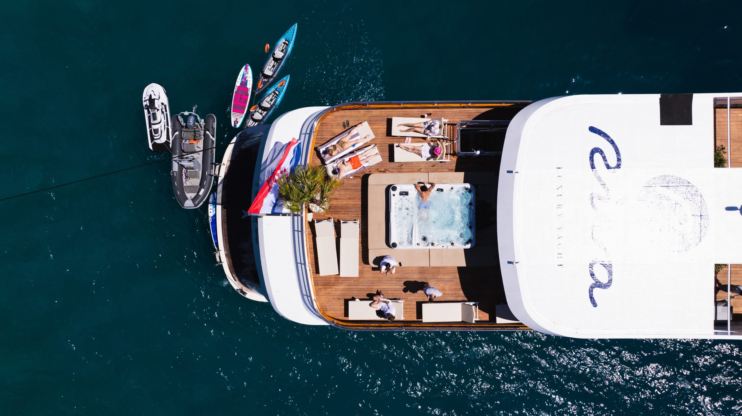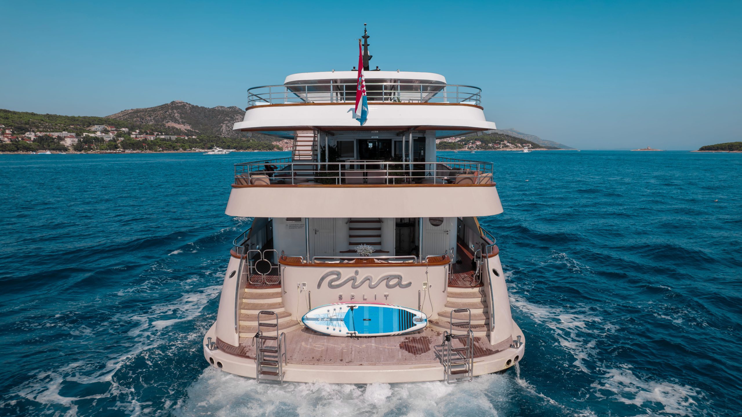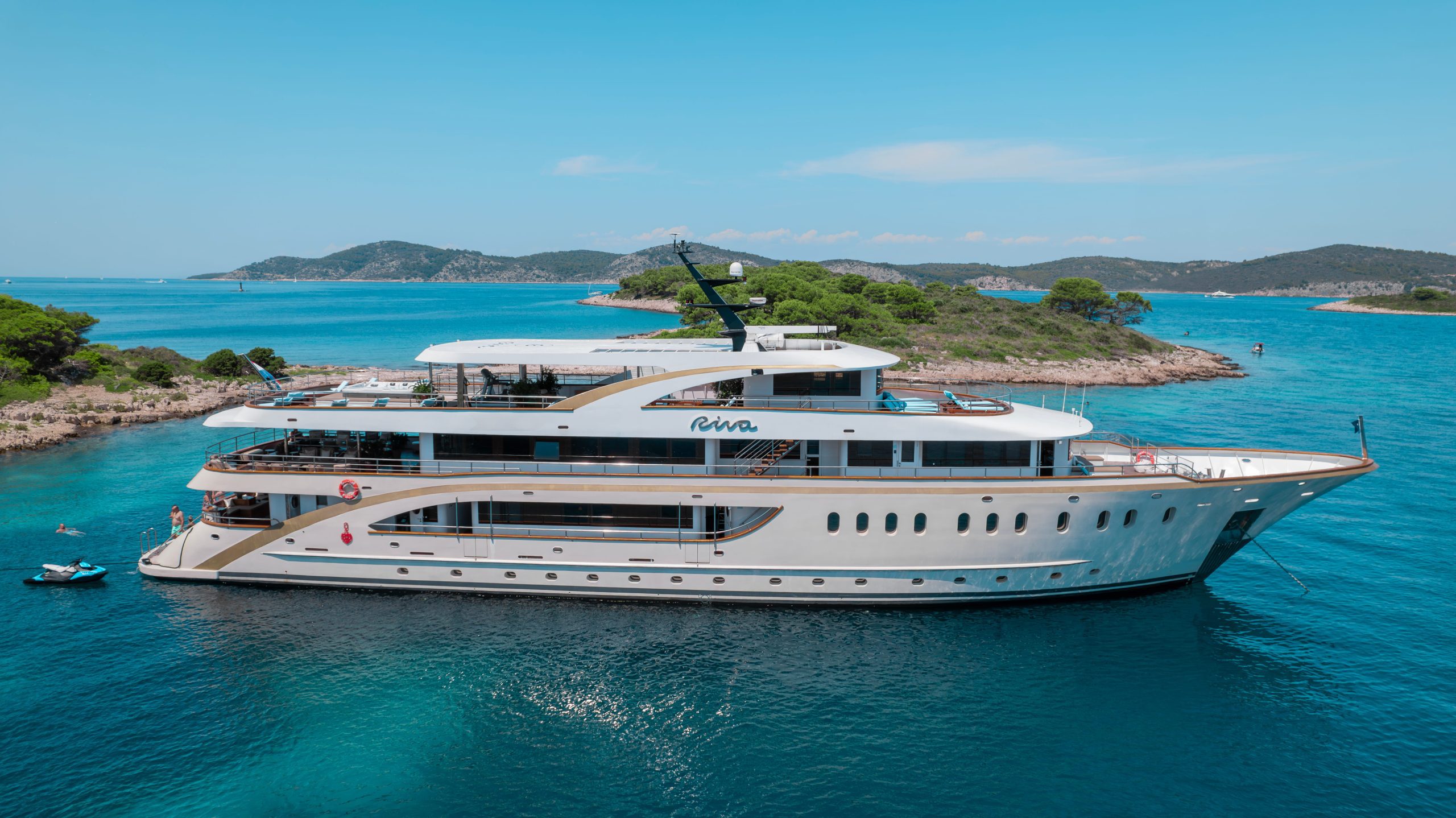 Want space, comfort, and a private charter yacht in Croatia that simply works? Riva is made for that. Family owned. Professionally managed. Warm, smooth, and easy from the first moment on board. Her large sundeck with a jacuzzi is one of the biggest highlights. From 2027, it will also feature a new fitness and cinema area, plus a bar and grill. More space to relax. More ways to enjoy the sea.